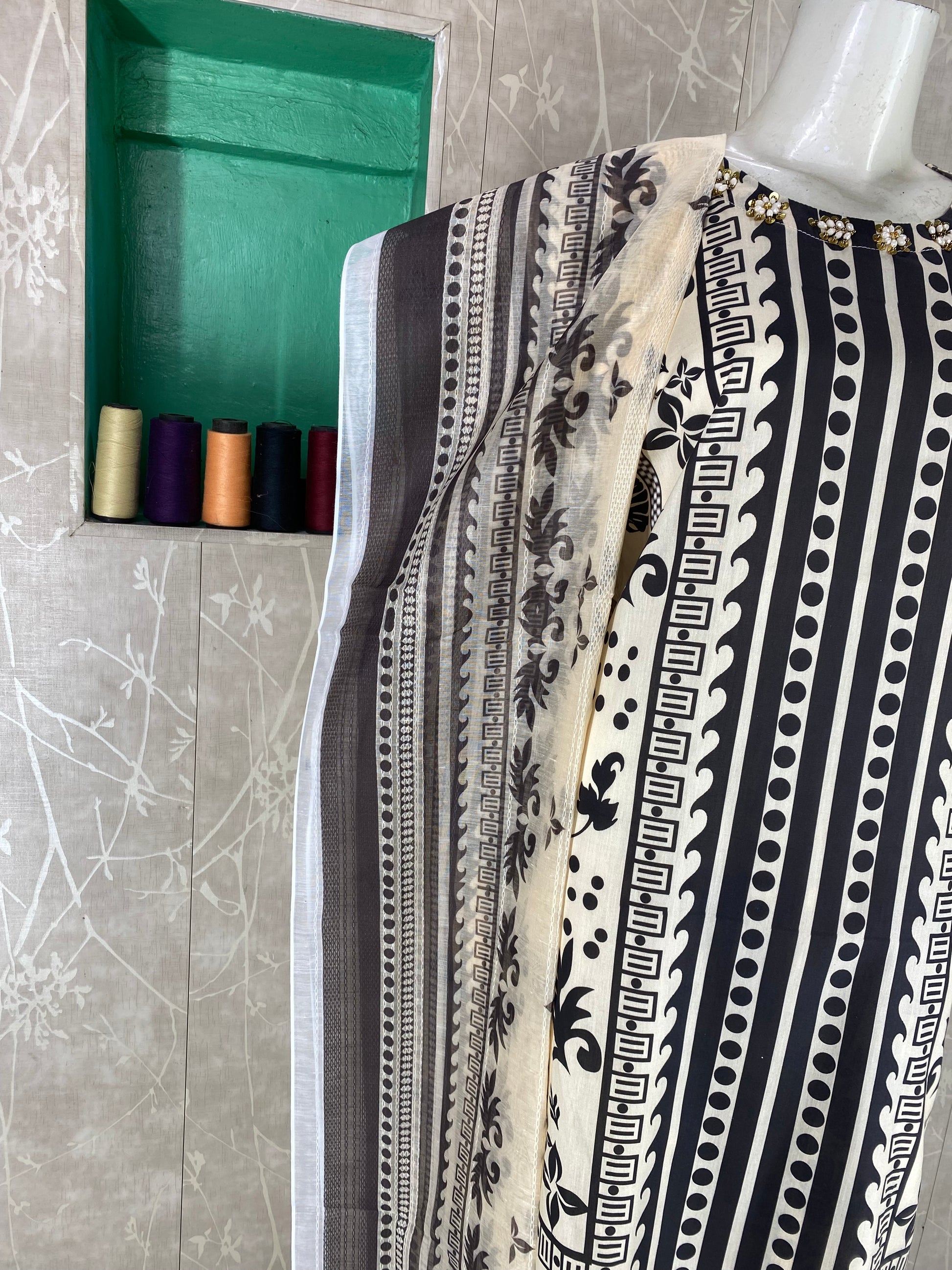 3PC Stitched Suit – Digital Printed Premium Lawn with Hand Embellished Neckline