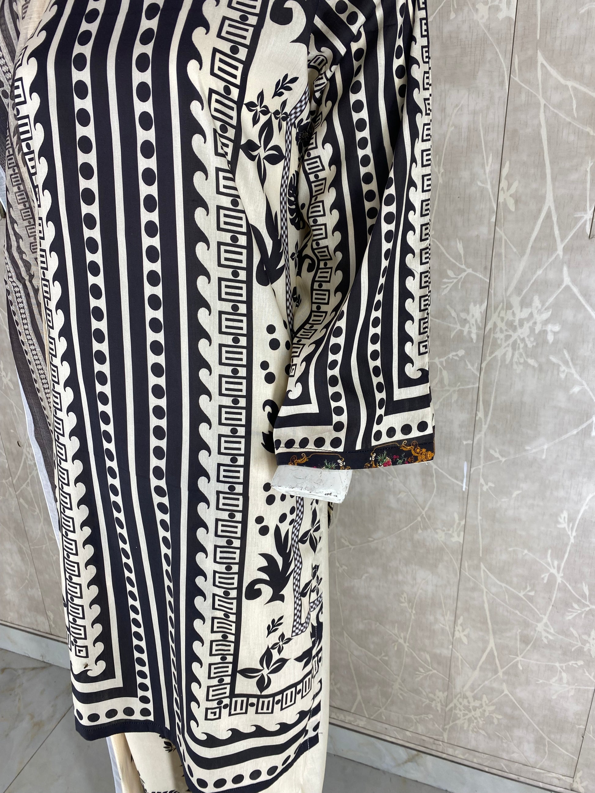 Crafted for elegance and comfort, this 3PC stitched suit features premium breathable lawn fabric, making it perfect for warm weather.